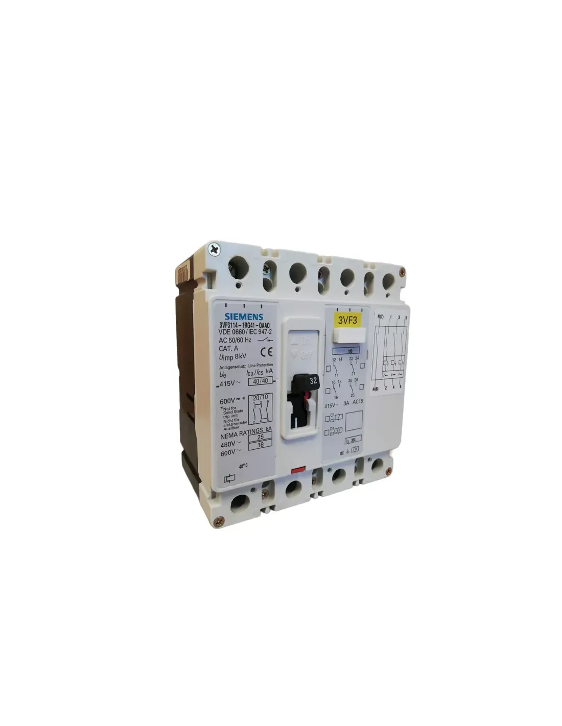 Siemens 3vf31141rg410aa0 automatic circuit breaker 4x32a 415v 40ka general distribution